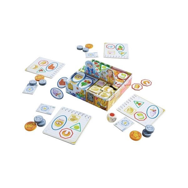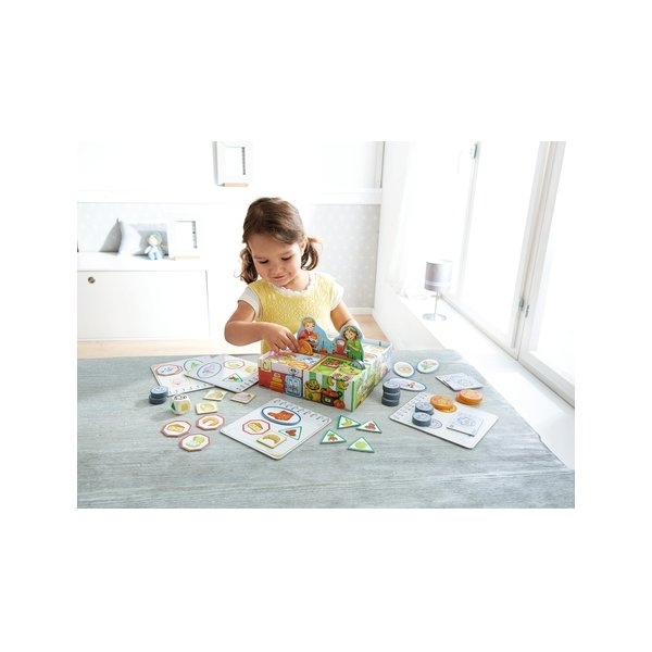 C'est parti pour aller faire les courses au marché. Chacun d'entre vous a une liste de courses indiquant quatre choses à acheter. Mais où trouve-t-on du pain et sur quel étal vend-on du fromage ? Combien coûtent les chaussettes et reste-t-il encore de délicieuses fraises ?