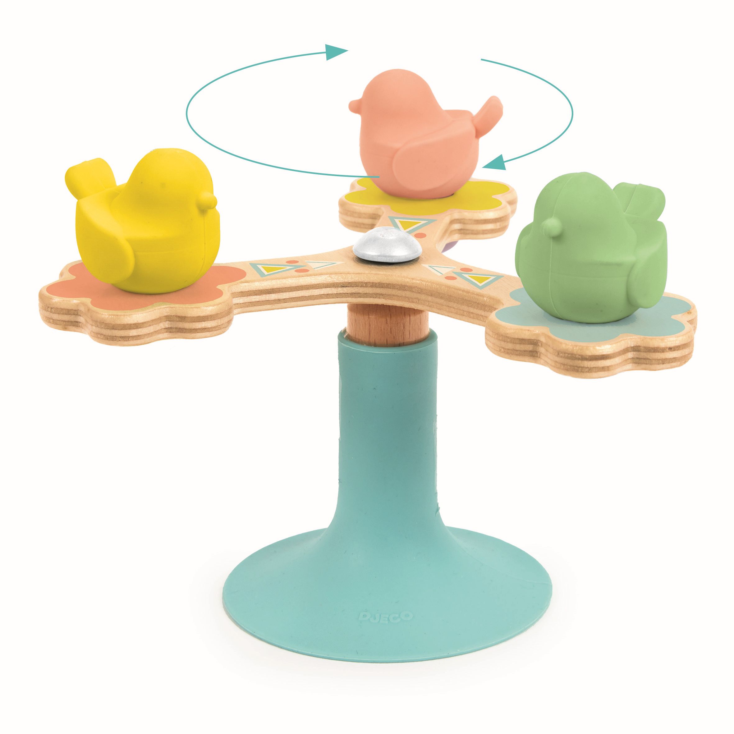 Votre enfant donne une simple impulsion avec sa main et s'amuse à faire tourner les 3 oiseaux rapidement et longtemps. Le système avec roulement à billes permet une rotation fluide et longue. La base de la ventouse en silicone assure souplesse et sécurité. Elle se fixe sur toutes les surfaces lisses.
