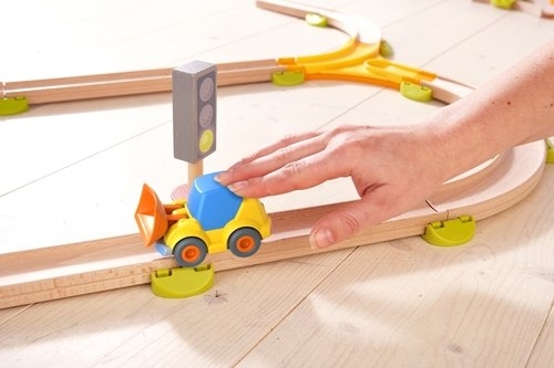 Amusement illimité sur un circuit Kullerbü, il peut pousser des billes devant ou les transporter sur la benne.