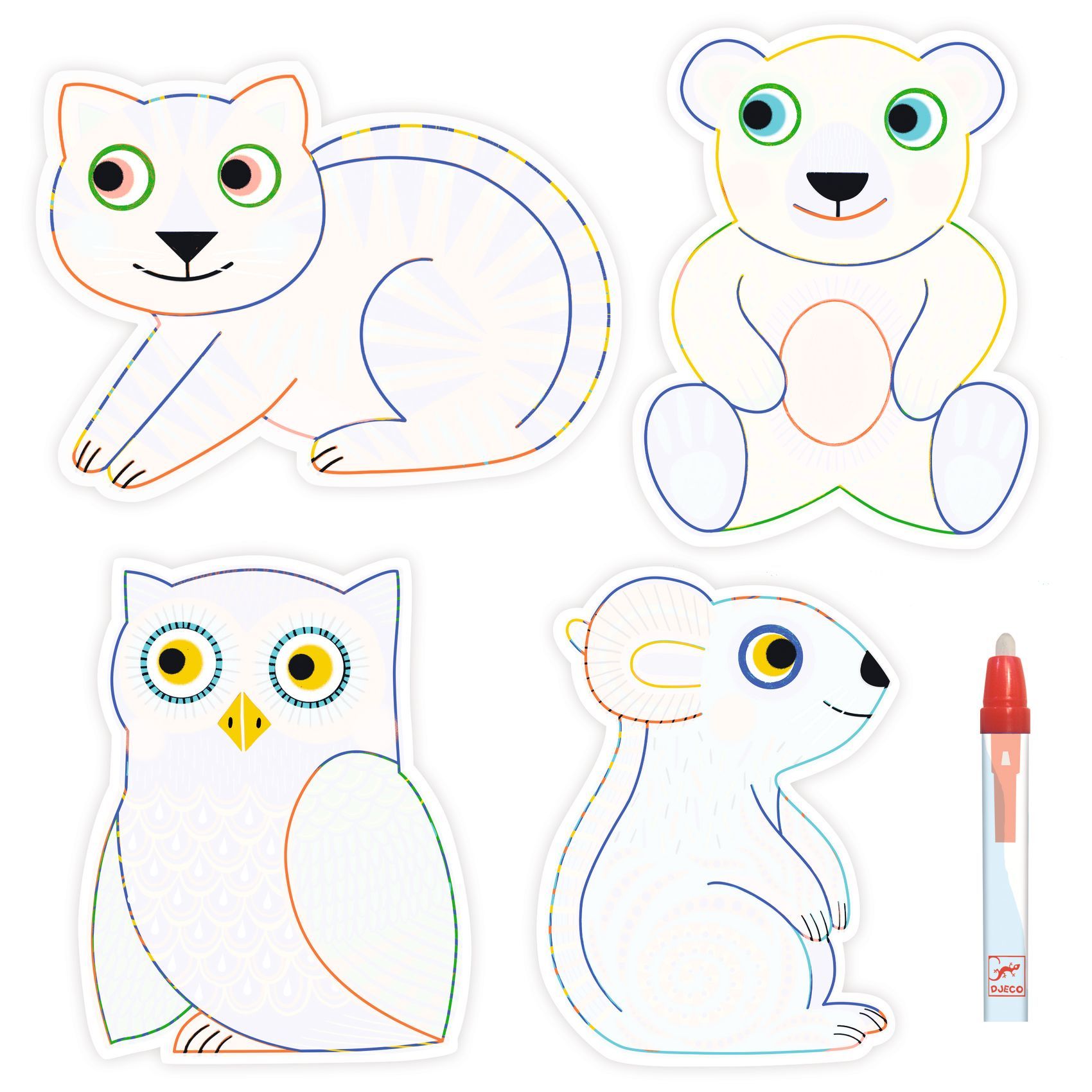 Contenu : 4 planches illustrées et un crayon magique