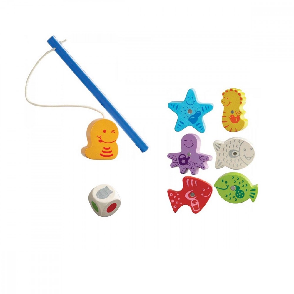 Dans un premier temps, l'enfant manipule librement la canne à pêche, l'aquarium et les animaux marins. Dans un second temps, il faudra pêcher le poisson dont la couleur est imposée par le dé... Si la pêche est bonne, on reçoit un objet en récompense. Qui sera le premier à collecter tous les objets demandés ?