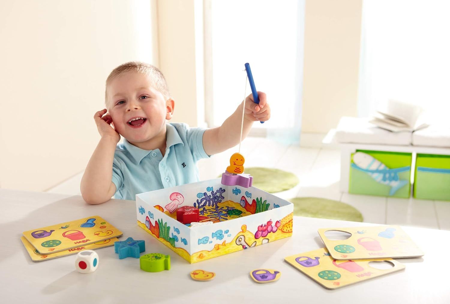 Ma première pêche est un jeu de la gamme HABA accessible dès 2 ans. C'est le premier jeu idéal pour rester assis et comprendre les premières règles.