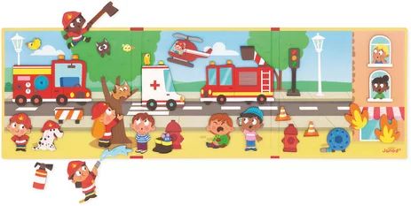 A l'intérieur, vous retrouverez un grand décor magnétique et 30 magnets représentant des pompiers en tout genre ou des éléments de décor, parfait pour agrémenter n'importe quelle histoire !