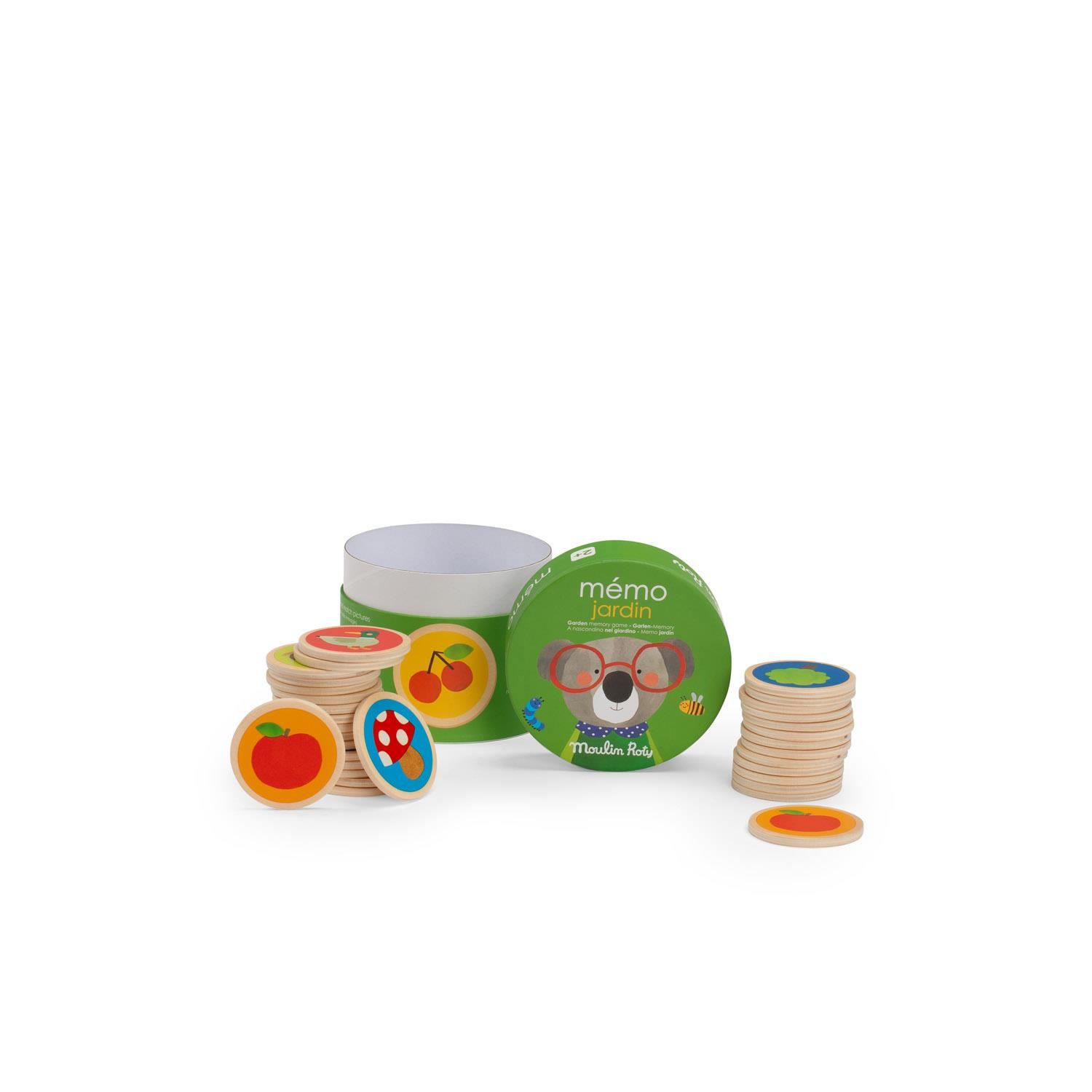 Le mémo jardin en bois de la collection Les popipop de Moulin Roty, un jeu éducatif basé sur la mémoire pour les enfants dès 2 ans.
