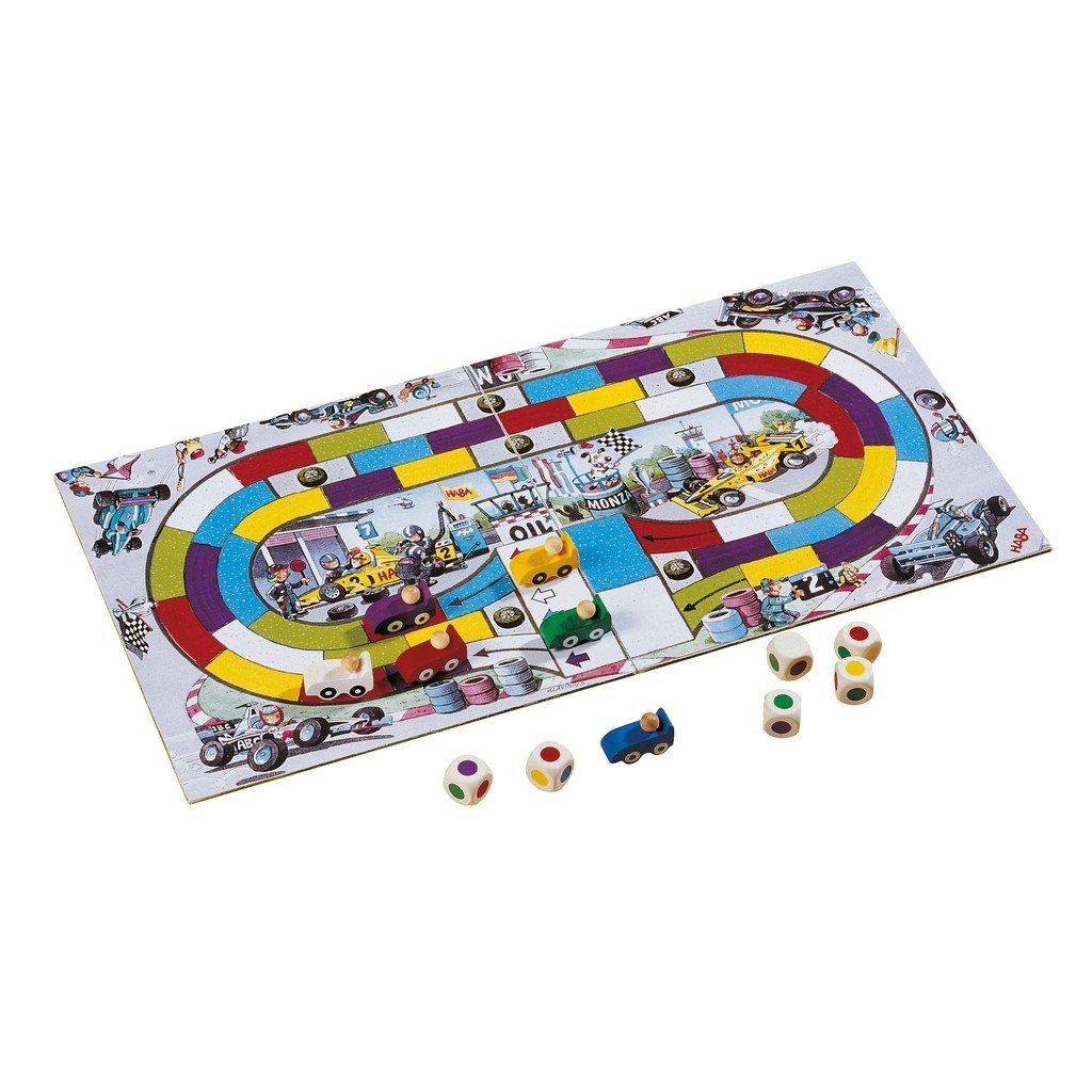 Monza est un jeu de course de voitures de HABA pour des joueurs rusés. Six voitures de course colorées et en bois sont sur la ligne de départ pour la grande course. Celui qui obtiendra les bonnes couleurs avec les dés et sera assez futé pour les combiner avancera très vite et gagnera cette course passionnante.