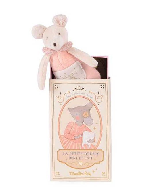 Découvrez la souris dents de lait de la collection La petite école de danse de Moulin roty, une souris cachée dans sa boite pour placer les dents de lait de votre enfant afin que la souris passe.