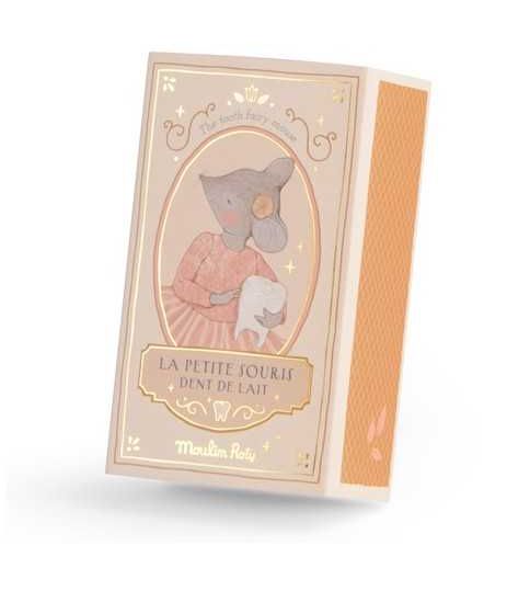 Cette adorable petite souris veillera précieusement sur les dents de lait dans sa poche jusqu'au passage de la "vraie" souris! Elle peut rester cachée dans sa jolie boite illustrée, jusqu'à ce que la prochaine dent de lait tombe.