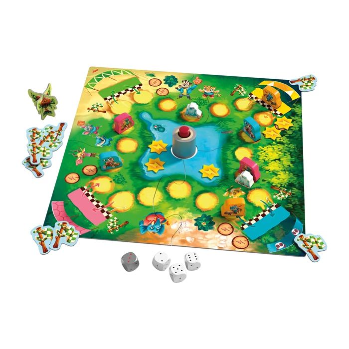 En appuyant vite sur le klaxon, les dés adverses sont récupérés pour avancer encore plus vite. Mais attention aux fantômes qui hantent la piste et renvoient les animaux à la case de départ ! Avec de la chance aux dés et en usant de tactique, soyez la première équipe à arriver à destination et remporter la précieuse coupe.